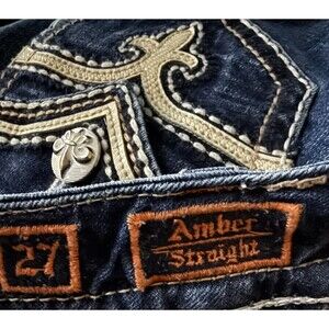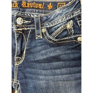 Rock Revival Jeans 27 Straight Y2K Thick Stitch Flap Pockets Designer Streetwear