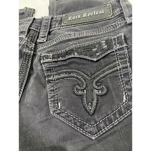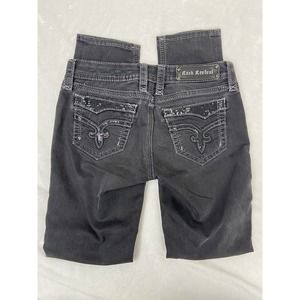 Rock Revival Jeans 27 Vivian Easy Skinny Black Bling Sequin Accent EUC Fast Ship.