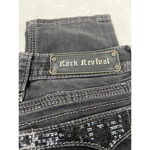 Rock Revival Jeans 27 Vivian Easy Skinny Black Bling Sequin Accent EUC Fast Ship