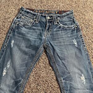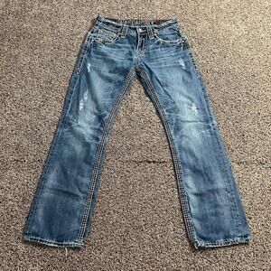 Rock Revival Jeans Mens 29 Relaxed Straight Tallon Distressed Contrast Stitching