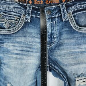 Rock Revival Jeans Mens 33 35x32.5 Blue Baxter Straight Distressed Streetwear