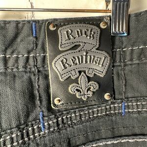 Rock Revival Jeans Mens 34 Black Stretch Cotton Embellished Denim Multpocket