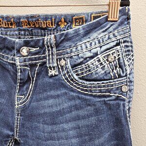 Rock Revival Jeans Womens 27 Blue Bootcut Liz Buckle Exclusive Embroidered Denim