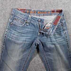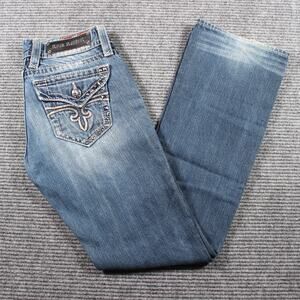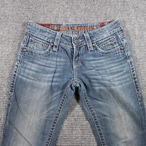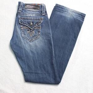 Rock Revival Jeans Womens 27 Blue Noelle Easy Boot Thick Stitch Flap Pockets
