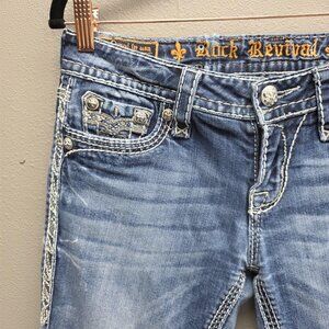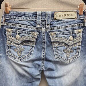 Rock Revival Jeans Womens 28 Blue Ginger Easy Boot Bootcut Embellished Stitching