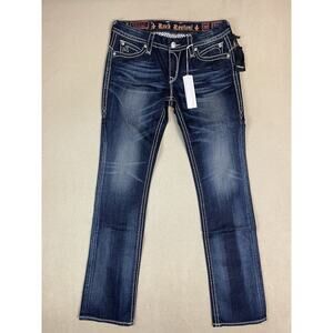 Rock Revival Jeans Womens 30 Blue Sasha Straight Embroidered Low Rise Regular