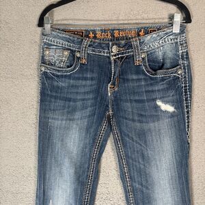 Rock Revival Jeans Women’s Size 29 Tricia 83 Boot Blue Denim Embellished Western