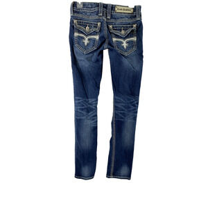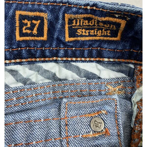 Rock Revival Jeans Womens Sz 27 Madison Straight Sequins Flap Pockets Destroyed
