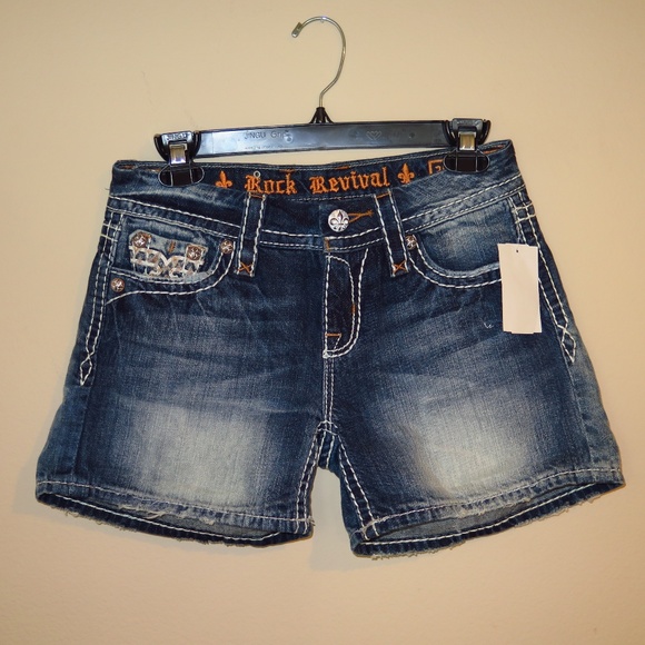 Rock Revival Julie Mid Rise Denim Shorts Sz 25 NWT