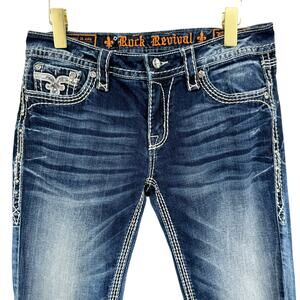 Rock Revival Kai Sequin Embellished Stitching Dark Wash Denim Crop Capri Jeans