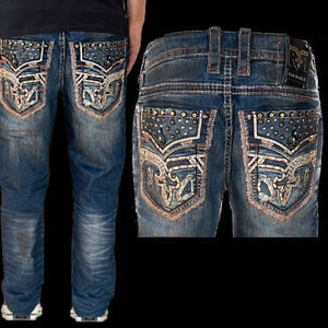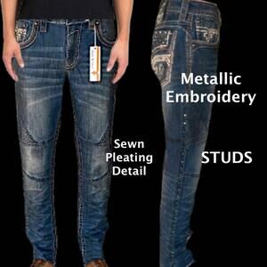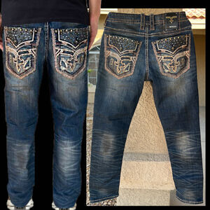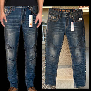 Rock Revival Lampson Vintage Blue Biker Stretch Jean Size: 34" W x 34" In