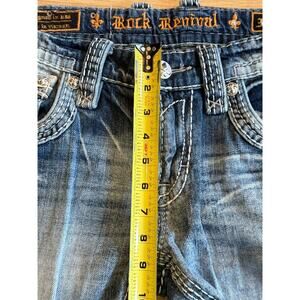 The "Rock Revival" (Loic-Slim Boot) Jeans in Men's Size W31x26 offer a stylish and slim-fitting option for the modern man. Made of dark wash denim with embroidered logo accents, these jeans feature a low rise and a 5-pocket design. The bootcut style adds a touch of flair, while the slimming features make them a flattering choice for all seasons. Pair these Rock Revival jeans with your favorite top for a versatile and fashionable look. The jeans are in good pre-owned condition. Please see all of the photos for more details.
