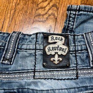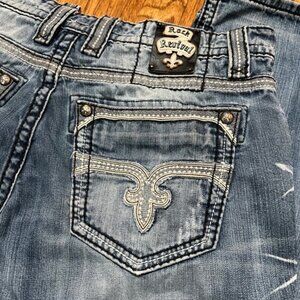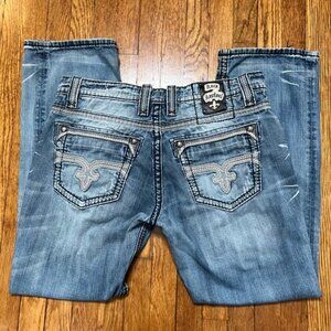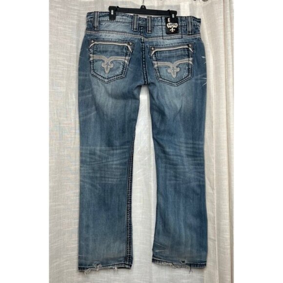 Rock Revival Marcy Straight Fit Jeans Distressed Medium Wash Denim Men's Size 38