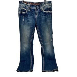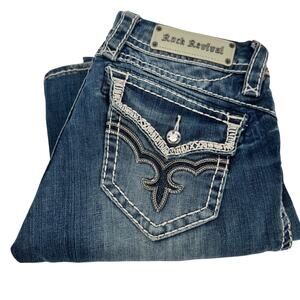 Rock Revival May Jeans Womens 27 (31x31 ACTUAL) Easy Bot Blue Denim Embellished