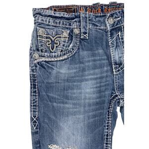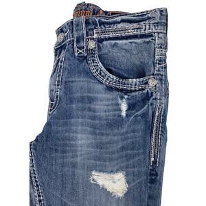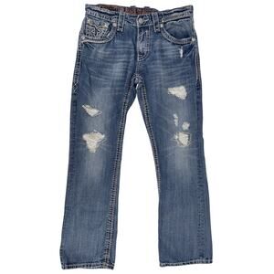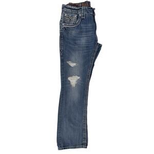 Rock Revival Men's Boot Cut Denim Jeans Troy Distressed 32x31 Stud Accent Biker