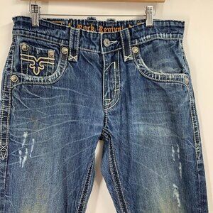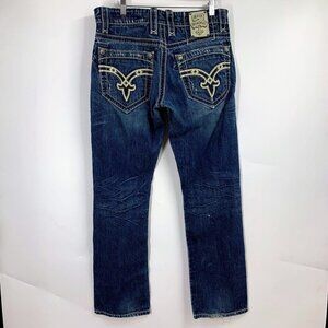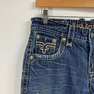 Rock Revival Men's Dexter Straight Medium Wash Distressed Embellished Size 32x30