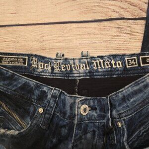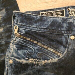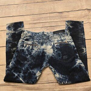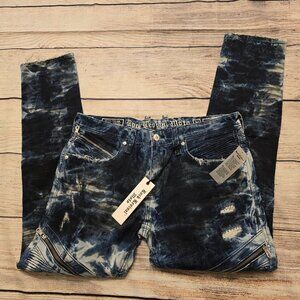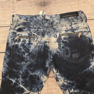 Rock Revival Moto Daviday Jeans Men's Destruction Blue Tie Dye Zippers Stretch