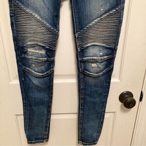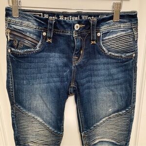 Rock Revival Moto Gaby Distressed Ribbed Skinny Low Rise Jeans 25