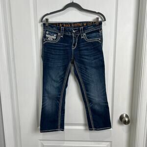 Rock Revival Nancy Easy Boot Crop Jeans Denim Dark Wash Women's Size 26 Western