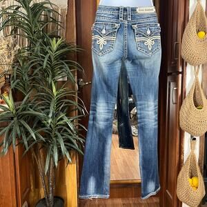 Rock Revival Penny Bootcut Jeans 28 RE82588L | Y2K Rhinestone Distressed Denim