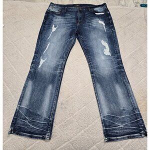 Rock Revival Remix Men's Blue Distressed Denim Straight Jeans Side Slit Hem Sz 40