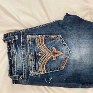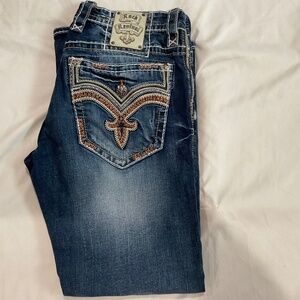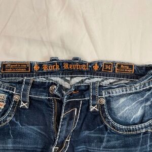 The Remy Rock Revival Jeans are a stylish blend of comfort and edgy style, perfect for those who want to make a statement. These 34x32 jeans feature a flattering, slim fit with a midge-rise waist, crafted from high quality denim for durability. Experience a perfect fusion of fashion and function with these must-have jeans.