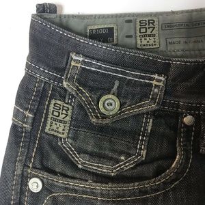 SR-07 Rock Revival jeans. SR-07 was rock revival's alt brand that made alternatives styles/colors to its parent company. Grey / faded black dye. Men's size 32. 17.5 inch waist across laying flat. 32.5 inch inseam.