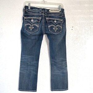 Rock Revival Sasha P31 Bootcut Jeans Womens 29 Dark Wash Distressed Denim Embroi