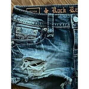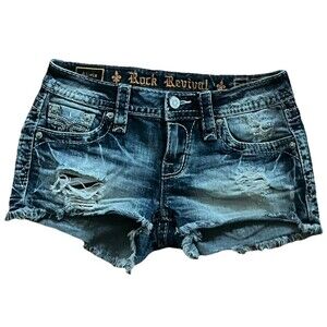 Rock Revival Shorts Jean Y2K Low Rise Cut Off Distressed Rip Raw Hem 26 Festival
