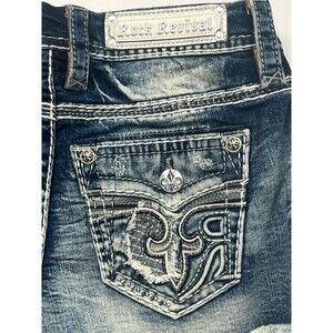 Rock Revival Shorts Y2k Jean Cut Off Distressed Raw Hem Mid Rise Embellished 25