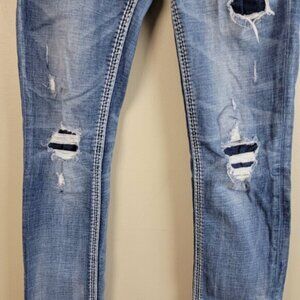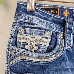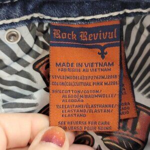 Rock Revival Vitual Pink Mid Rise Straight Patch Distressed Medium Wash Jeans 27