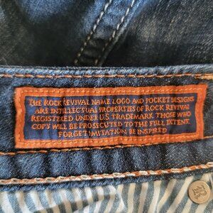 These Rock Revival “Deborah” Bootcut Jeans (Size 27) perfectly blend premium denim craftsmanship with bold, signature styling. Featuring Rock Revival’s iconic contrast metallic silver stitching and embellished back pockets, these jeans deliver that standout look the brand is known for.