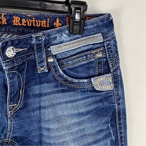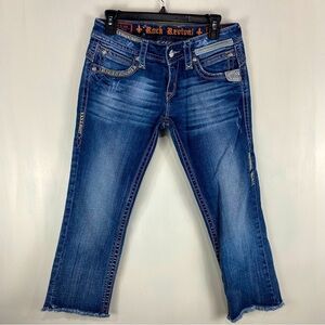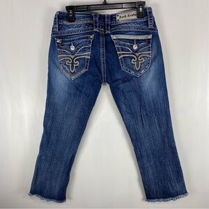 Rock Revival Women Gwen Capri Dark Wash Frayed Raw Hem Denim Jeans Pants Size 28