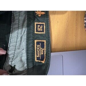 Elevate your denim collection with these Rock Revival Women's JEN SKINNY Jeans. The dark wash green denim is accented with rhinestones, making them a perfect addition to your wardrobe. The jeans are made of 98% cotton and 2% elastane, ensuring a comfortable fit. These jeans are designed with faux flap pockets, and the size is regular with a size of 28 and inseam of 33 inches. The Jen model is a skinny style, making it a perfect fit for any occasion. These jeans are perfect for any woman who wants to add a touch of style to her wardrobe.