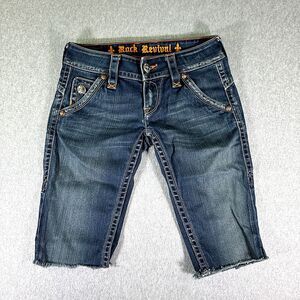 Rock Revival Womens Shorts Blue Tag Size 26 (28) Cut-Off Low Rise Broken Zipper
