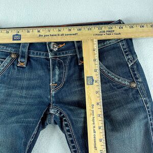 This pair of jeans are in good condition, they don't look like brand new either, are PRE-OWNED (USED) they has been used or worn previously, so might have some stains or signs of wear, They look like as described on photos, If there any or many blatant flaws on the item it would be pointed out with a pointing white arrow or a wooden Stick. Please Note that TRUE SIZE measurements are showing on photos with a ruler.