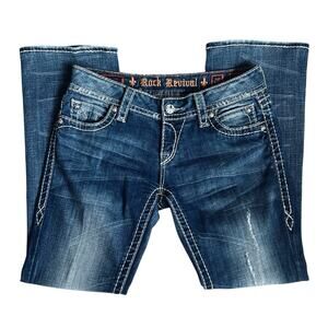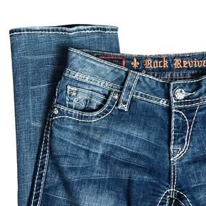 Rock Revival Women’s Sz 28 Swarovski Crystal Jamie Easy Boot Embroidered Stretch Fenim Jeans. Excellent condition.