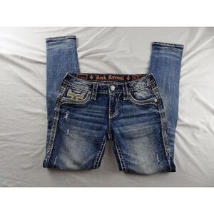 (B) Rock Revival Freesia Skinny Women Distressed Jean Size 26. Preowned. Great condition. Please check measurements for the perfect fit.
