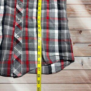 Great condition shirt from Rock & Roll Cowboy. Gray, black, red, and white plaid on soft cotton weave. Long sleeve, collared, and snap button front. No rips, stains, or tears. No cosmetic damage.