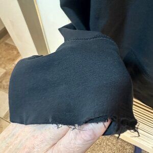 Condition: OK pre-owned condition — some rhinestones/bling have fallen off (shown in photos) and sleeve hems are frayed. Well-worn and comfy. Very rock & roll!