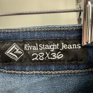 Keywords: Rock and Roll Cowgirl, Rival Straight Jeans, Dark Wash Jeans, Womens Jeans, Denim Jeans, Straight Leg Jeans, Bootcut Jeans, Western Style, Cowgirl Jeans, Size 28x36, Dark Denim