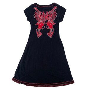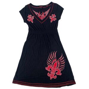 Rock & Roll Cowgirl Size Small Dress Black Red Embroidered Y2K Punk Grunge. Gently