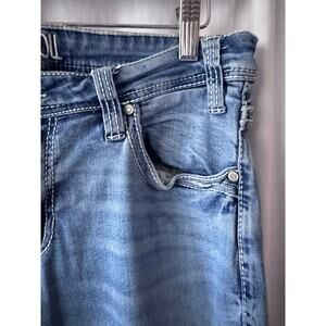 Rock & Roll Cowgirl Women's Riding Jeans Light Wash Bootcut 31x34 Distressed Denim