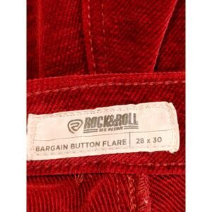 Rock & Roll Denim Bargain Button Flare Corduroy Pants Red Stretch Womens 28x30