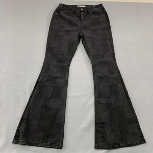Rock & Roll Denim Jeans Womens 30x33 Black High Rise Flare Patchwork Stretch