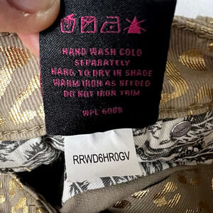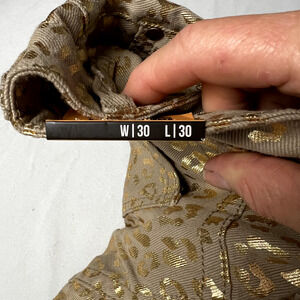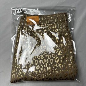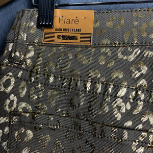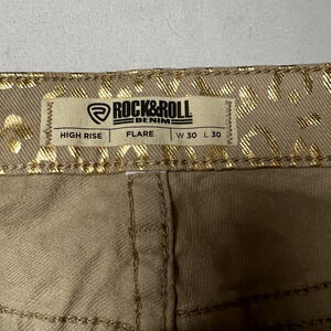 * Title: Rock & Roll Denim Ladies 30x30 Metallic Gold Cheetah High Rise Flare Disco Jeans