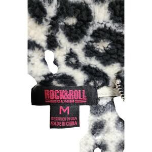 Rock & Roll Denim M Faux Fur Animal Print Leopard Spotted Cropped Sweater with zipper. In good pre-owned condition.