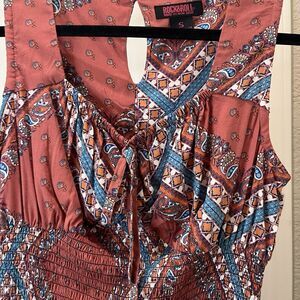 Rock & Roll Denim Mauve Pink Floral Paisley Western Smocked Cowgirl Crop Top S