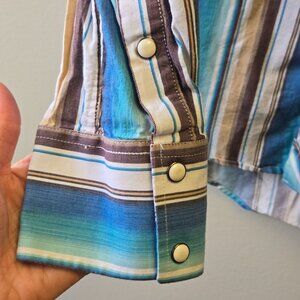 Tags/keywords: western shirt, mens button-down, striped shirt, modern fit shirt, cowboy shirt, Rock & Roll Denim, casual shirt, snap button shirt, long sleeve shirt, cotton shirt, blue striped shirt, western wear, men's medium shirt, cowboy, rodeo, ranchwear, vintage style