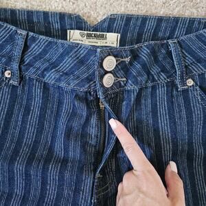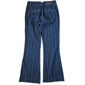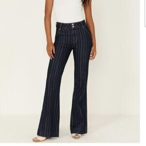 Rock & Roll Denim Stripe Jacquard Dark Wash High Rise Flare Trouser Jeans 28x32
